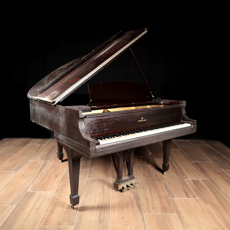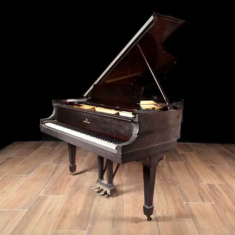 This Steinway Model M has the traditional style case and will be refinished in a classic satin ebony. The soundboard is in excellent condition. It will be rebuilt using historically accurate parts and includes a matching wood top bench.