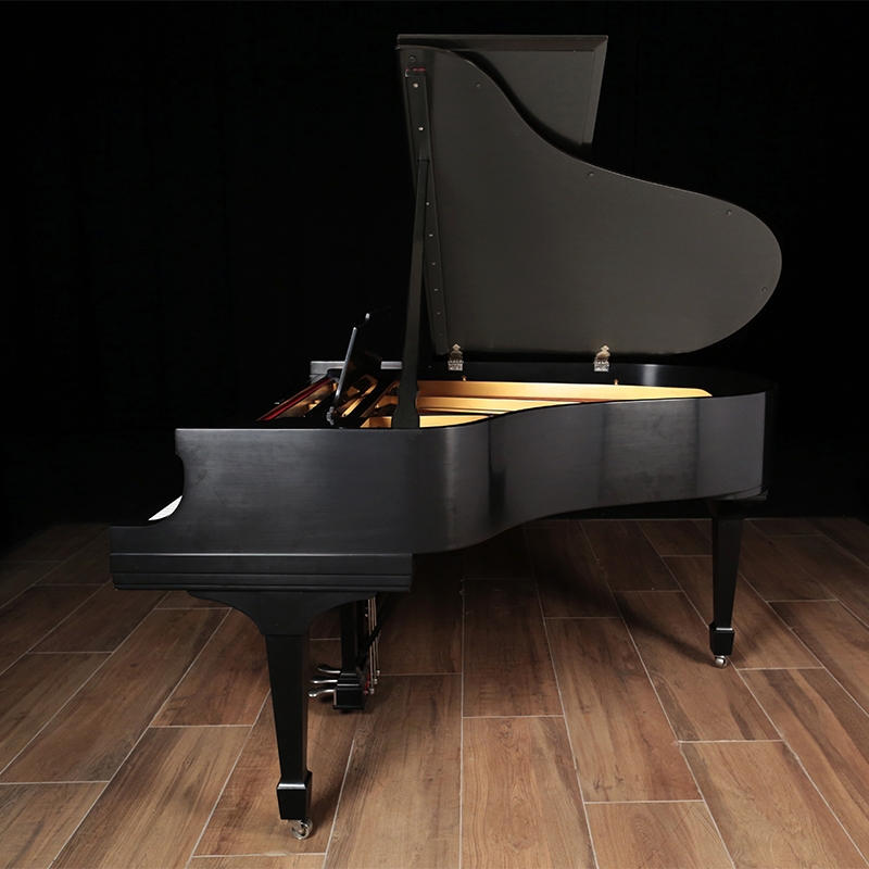 This is a Model M that has previously been restored with new action parts, strings, pinblock, satin ebony finish, and new soundboard and bridges. Includes matching wood top bench.