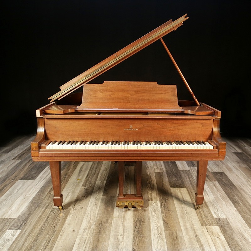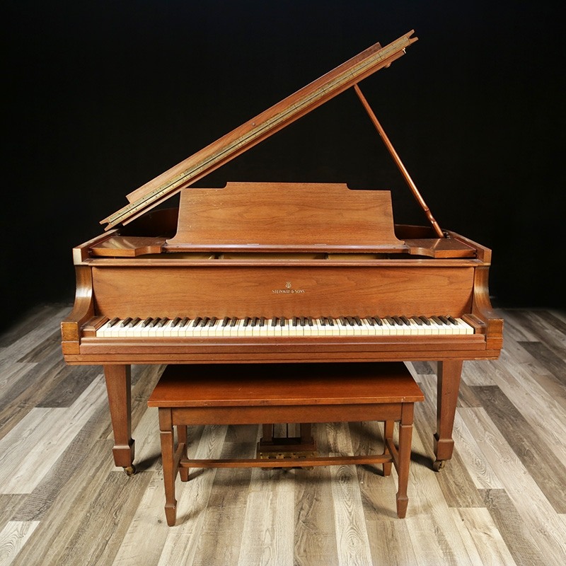 This Steinway Model M has an excellent original soundboard. The traditional style Walnut case will be finished with a stain of your choice (or satin ebony). Includes original matching wood top bench shown.
