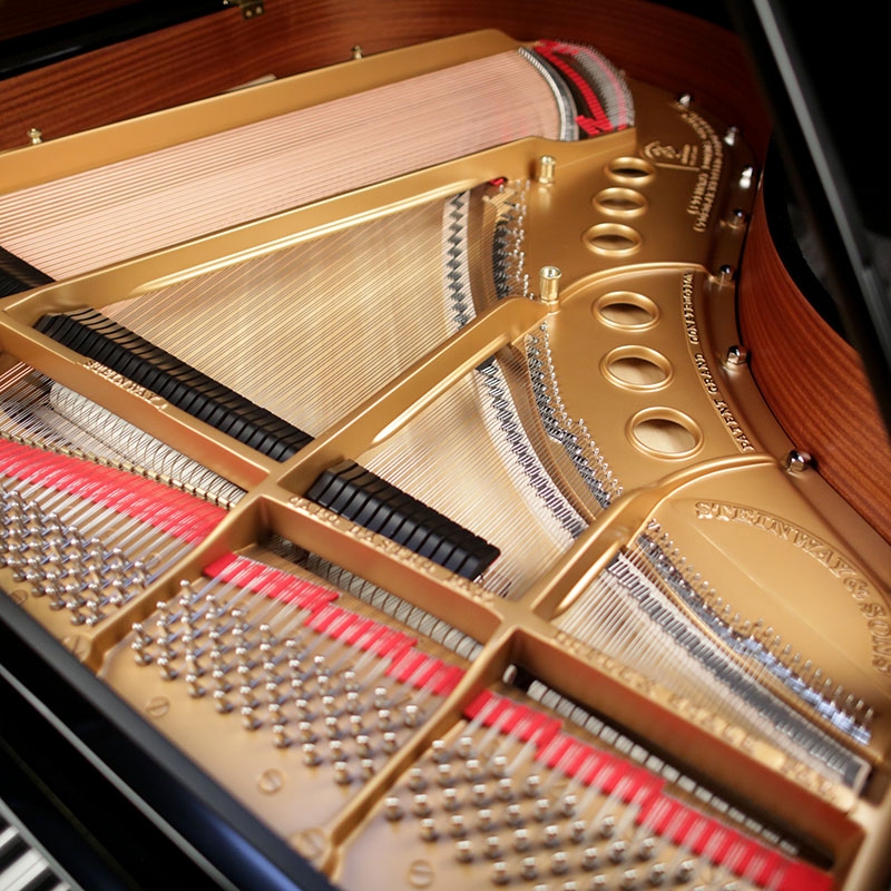 We recommend that this soundboard be replaced with a hand-crafted spruce soundboard.