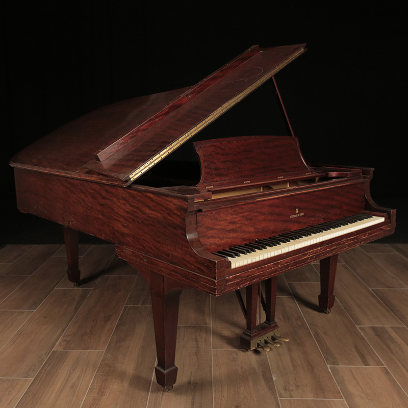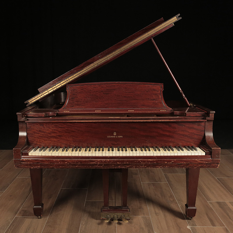 This Steinway B is encased in a beautiful Mahogany veneer. It will be refinished in a stain of your choice and fully rebuilt using authentic Steinway parts. Includes a matching bench.