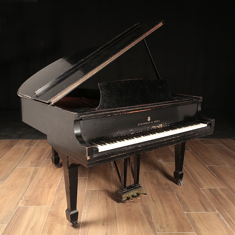 This Steinway Grand has a Traditional case and the belly and action section has been previously restored. It can be finished in classic Satin Ebony (High Gloss Ebony is available at an additional cost). Includes a matching wood top bench.