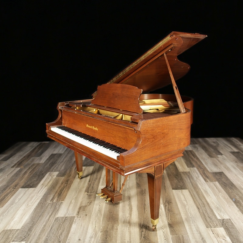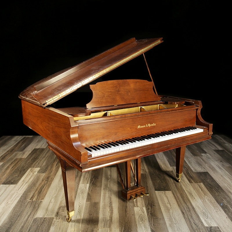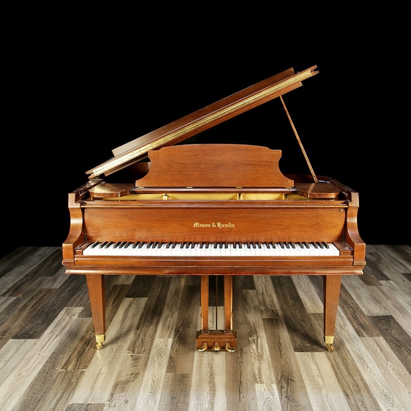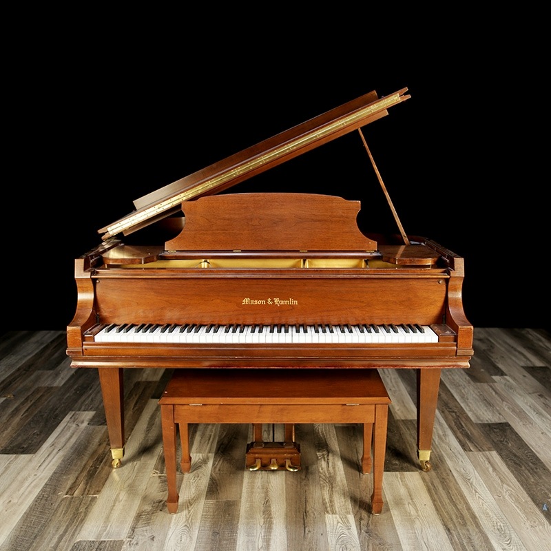 This Mason & Hamlin Model A has a Walnut veneer and an excellent original soundboard. Mason pianos are known for thunderous low end and bell-like highs. Contact us to find out how we can adjust the tone to your liking. Includes wood top bench shown.