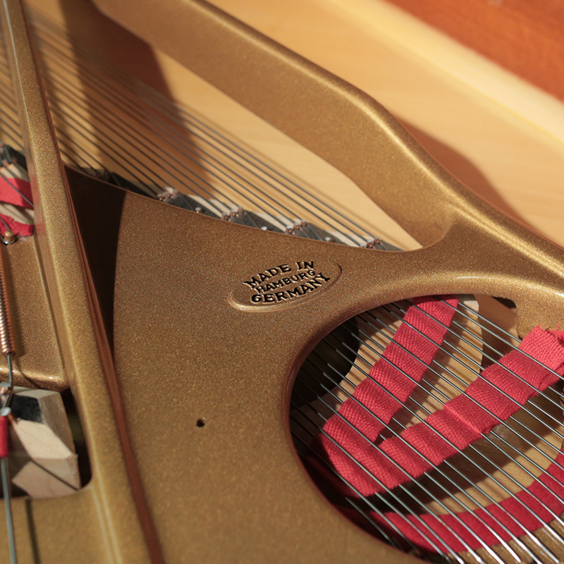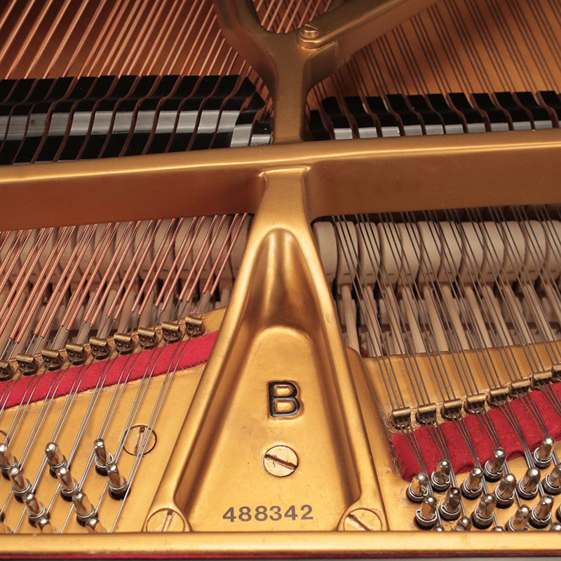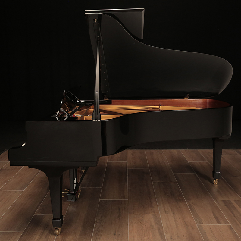 This 1984 Hamburg Steinway B has just been restored with new strings, tuning pins, pin block, damper felts and a rebronzed harp. It has a high gloss ebony finish that has just been polished and includes a matching artist bench.