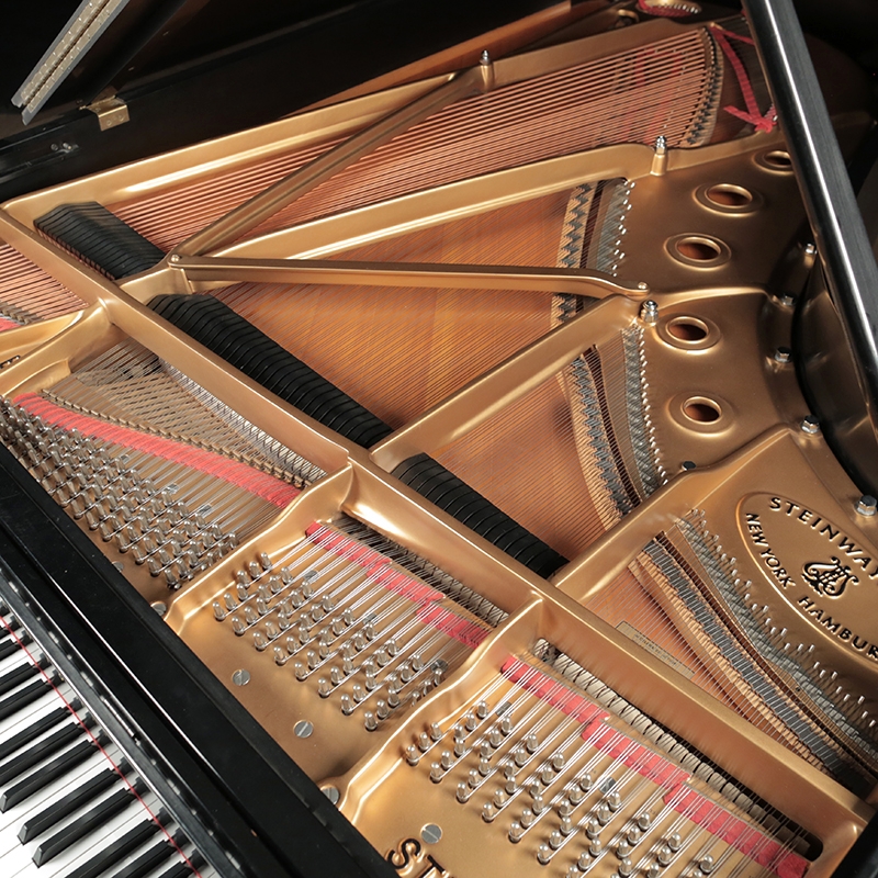 This is a Steinway B with a classic traditional styled case. The soundboard and mechanical parts are in excellent condition. The case can be refinished in a new hand-rubbed satin ebony for an additional cost. Includes a matching bench.