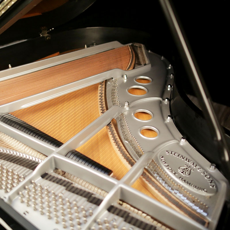 Steeped in history, the Sterling Edition honors Steinway's roots, harking back to the days when nickel hardware was the norm on pianos. Introduced in 1928, brass hardware became the standard, following the design trends of the time. This Sterling Edition piano, however, is a delightful exception to the modern brass standard. The high gloss finish still shines and is highlighted with the silver harp and nickel plated hardware. Contact us on how we can adjust the tone to your liking! Includes matching original bench shown.