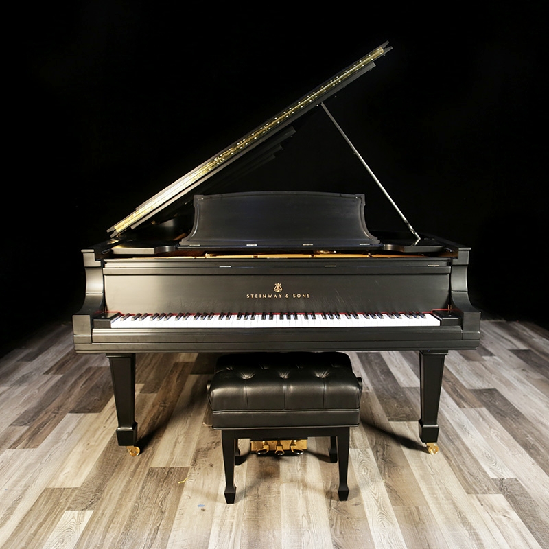 This concert grand has been fully restored by us in 2019. It has a Steinway Renner action and new soundboard installed by 30-year Steinway Soundboard Veteran - Galo Torres. Contact us on how we can adjust the touch & tone to your liking. Includes a matching bench. View Video Testimonial from client who originally purchased this Steinway here - Video Testimonial