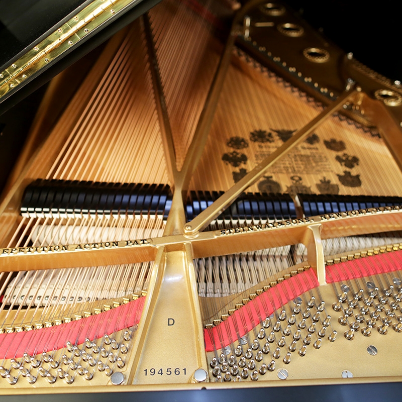 We recommend that this soundboard be replaced with a hand-crafted spruce soundboard.